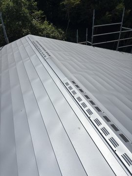 本日も新築屋根工事。破風包みと換気棟の取り付けを行いました!