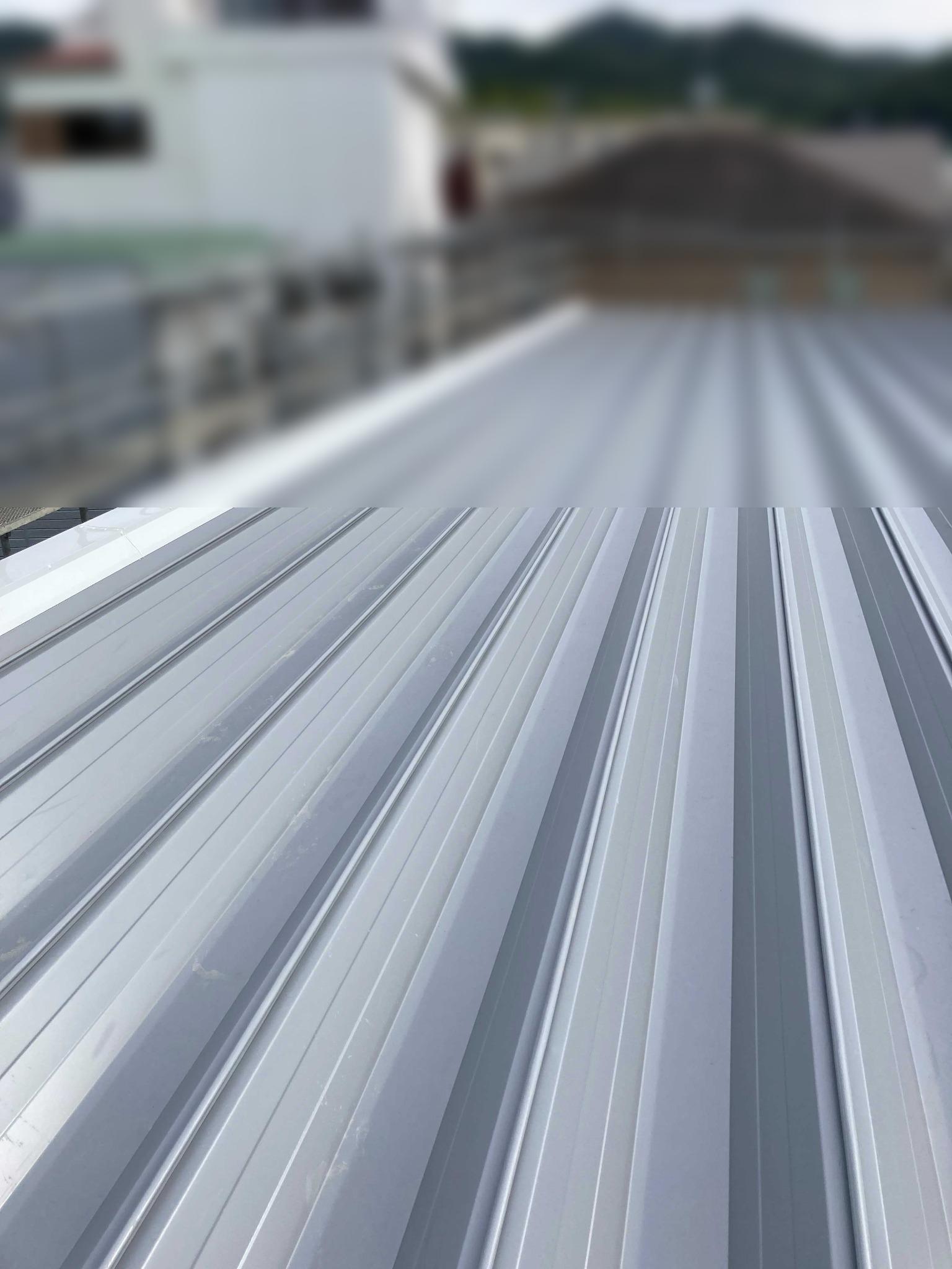 屋根材には、**ヨドコウ製「ヨド166ルーフハゼ」**を採用。現場成形にて対応し、長尺対応や施工性に優れた仕上がりを実現しています。